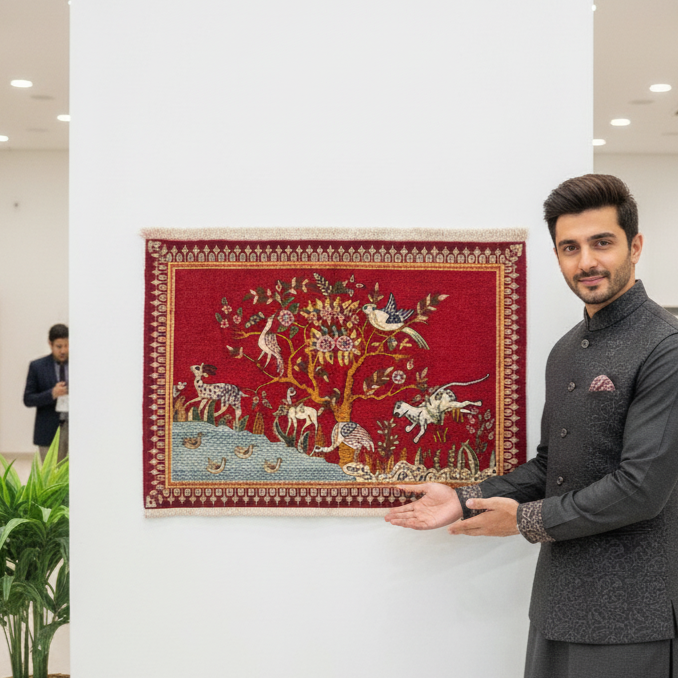 Design: Features a beautiful pictorial design with birds, animals (such as goats and cats), and lush trees, beautifully handwoven to tell a story of nature and harmony.