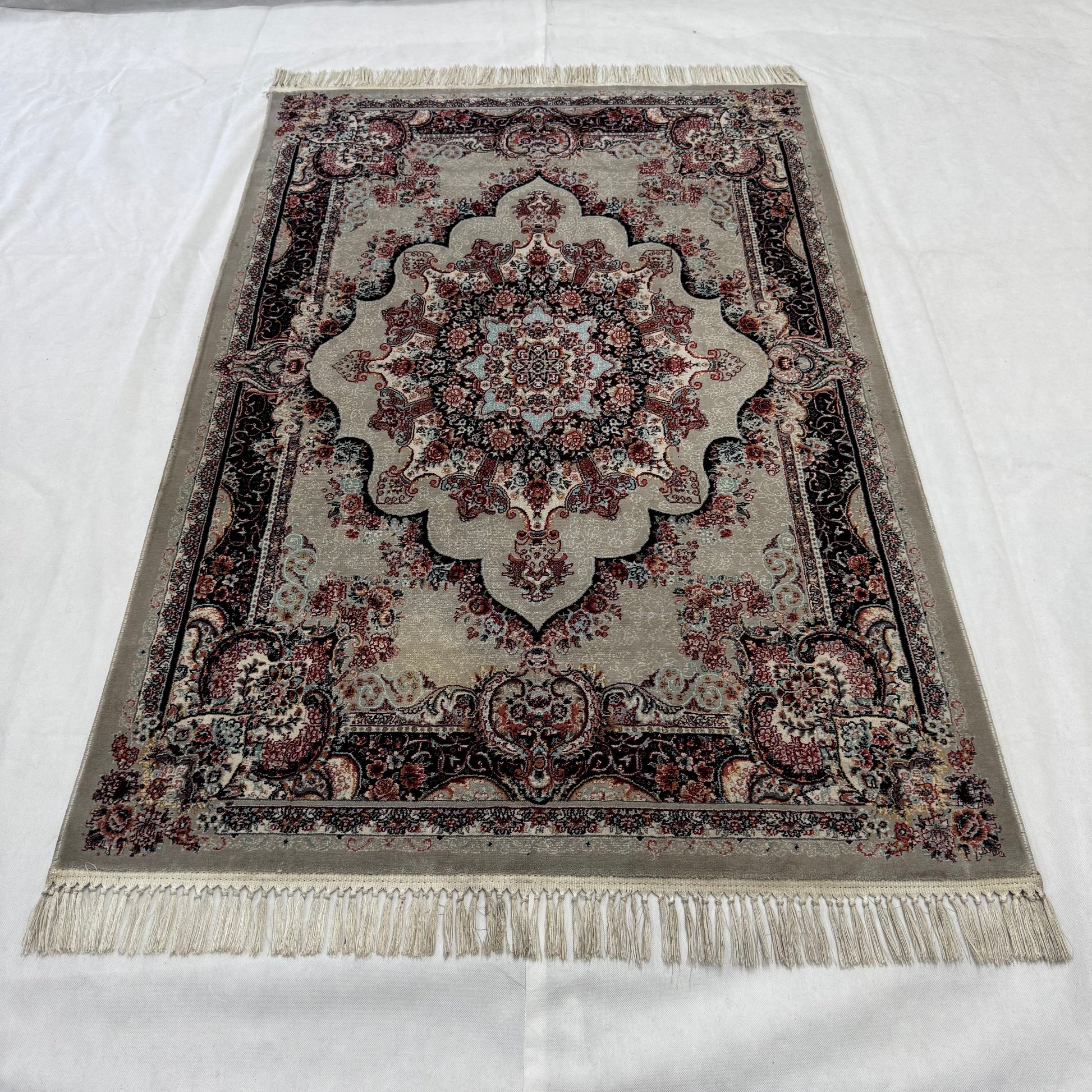 This 4ft x 6ft Persian Rug by Farsh e Shamiran combines intricate Persian design with machine-made precision. Crafted with 700 reeds and made from premium polyester and acrylic, this rug is a perfect blend of luxury, durability, and ease of care. The elegant beige and burgundy tones, along with its floral medallion pattern, create a timeless aesthetic that suits both modern and traditional home décor.