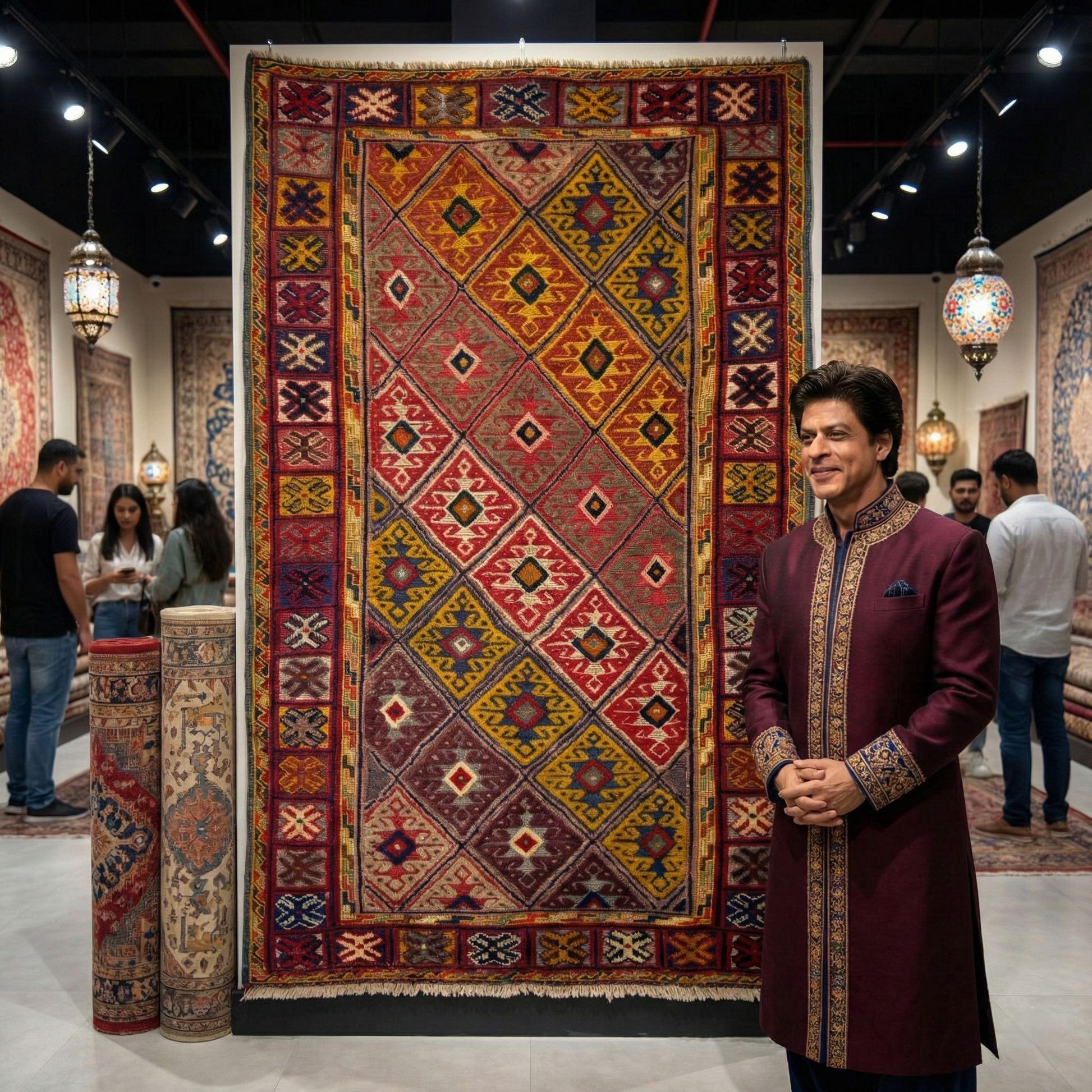 - Intricate Geometric Patterns: Features a mix of vibrant colors such as red, yellow, blue, and brown, arranged in traditional diamond and floral motifs.