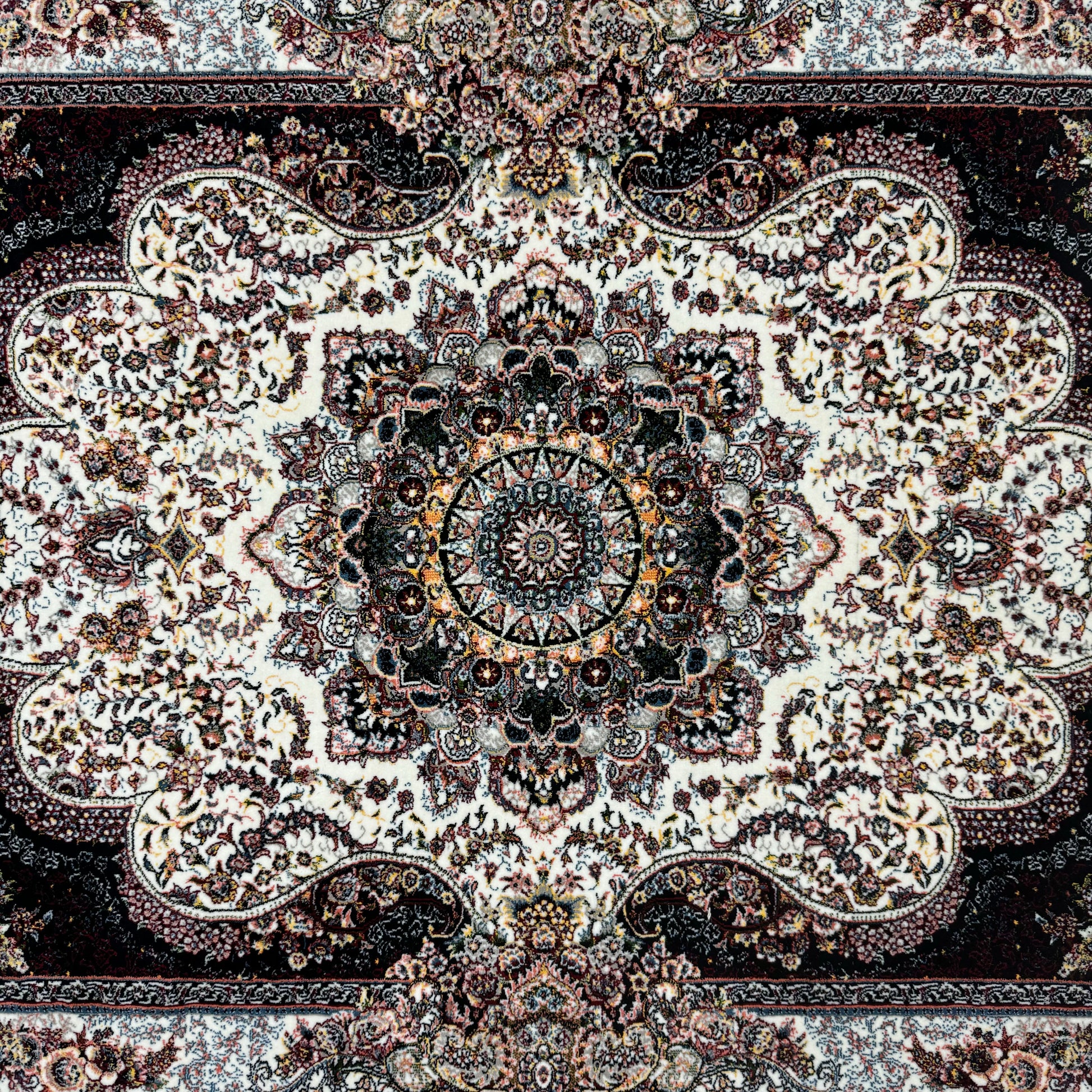 Luxurious Persian Rug 4ft x 6ft - Farsh Nagin Chaman Design in Ivory & Black - 1000 Reeds Acrylic Rug