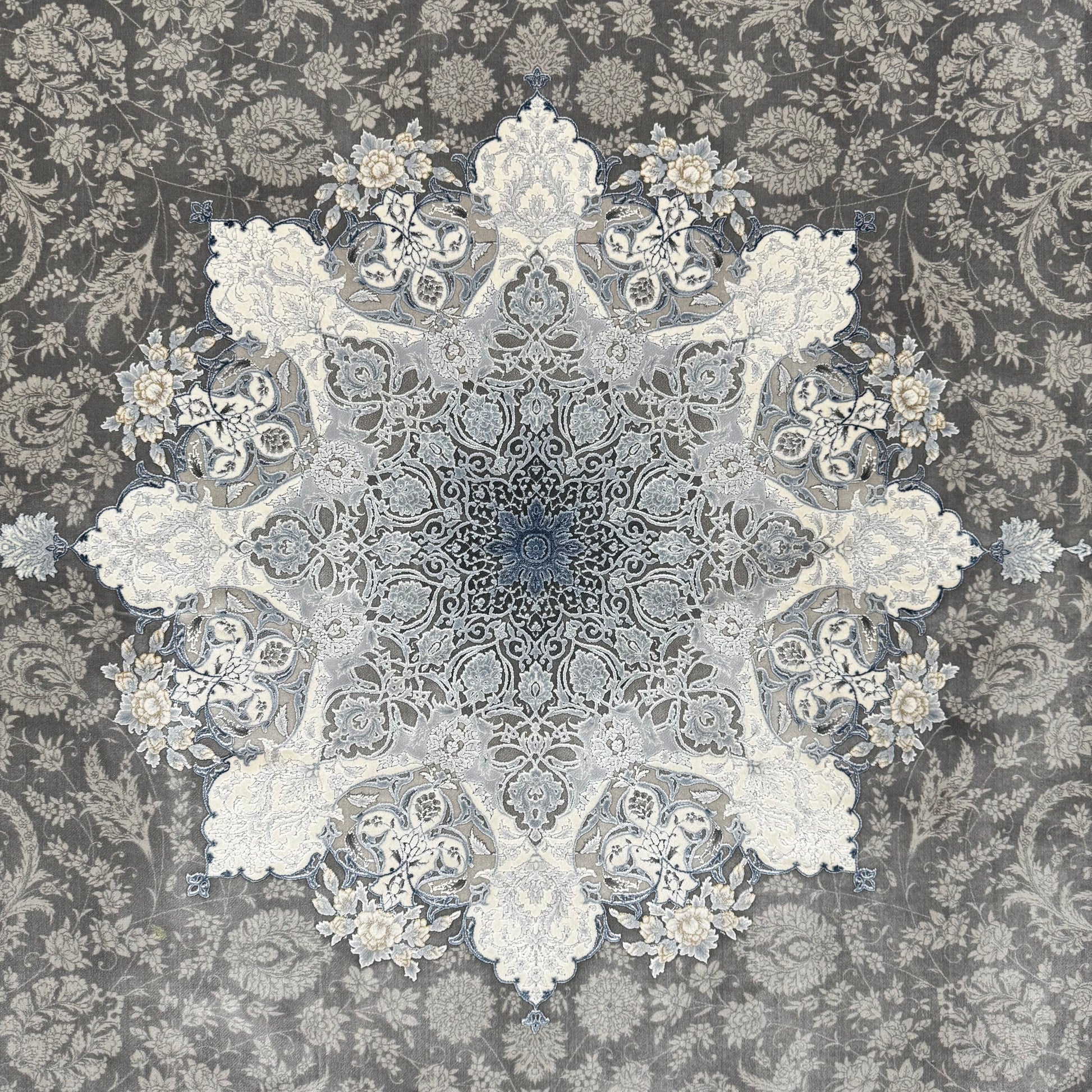 Elevate your interiors with the Persian Beheshti Rug, expertly crafted in Iran using premium Bamboo Silk. Showcasing a refined silver-grey palette and ultra-fine 1500-reed density, this machine-made rug delivers exceptional clarity, a soft silk-like sheen, and timeless Persian elegance—ideal for large, luxurious spaces.