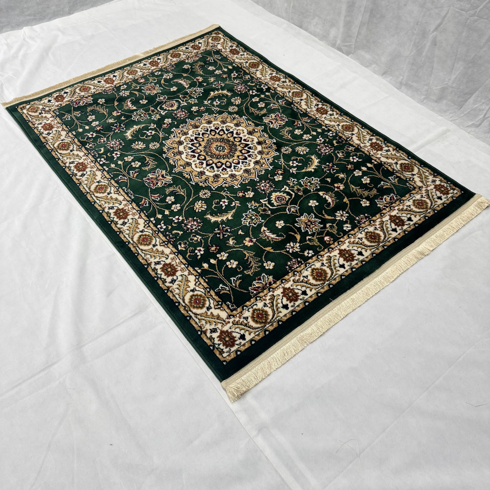 Turkish Rug - Emerald Medallion Collection - Green & Cream Classic Design